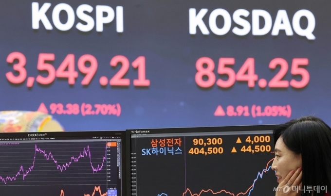 2ÀÏ ÄÚ½ºÇÇ Áö¼ö´Â Àü °Å·¡ÀÏ ´ëºñ 93.38Æ÷ÀÎÆ®(2.70%) ¿À¸¥ 3549.21¿¡ °Å·¡¸¦ ¸¶ÃÆ´Ù. À̳¯ Àü °Å·¡ÀÏ ´ëºñ 69.65Æ÷ÀÎÆ®(2.02%) ¿À¸¥ 3525.48·Î Àü °íÁ¡À» °æ½ÅÇϸç Ãâ¹ßÇÑ ÄÚ½ºÇÇ´Â Àå Áß ÇÑ ¶§ 100Æ÷ÀÎÆ® ÀÌ»ó ¿À¸£¸ç 3565.96À» ±â·ÏÇϱ⵵ Çß´Ù.