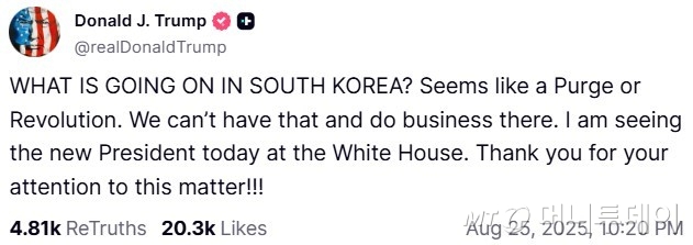 ÀÌ ¶§¹®¿¡ µµ³Îµå Æ®·³ÇÁ ´ëÅë·ÉÀº Áö³ 8¿ù ÀÌÀç¸í ´ëÅë·É°úÀÇ ÇÑ¹Ì Á¤»óȸ´ã Á÷Àü "Çѱ¹°ú ºñÁî´Ï½º¸¦ ÇÒ ¼ö ¾ø´Ù"¸é¼ "±×µéÀº ½ÉÁö¾î ¿ì¸® ±º»ç±âÁö¿¡ µé¾î°¡ Á¤º¸¸¦ ¼öÁýÇß´Ù°í µé¾ú´Ù"°í ÁöÀûÇϱ⵵ Çß´Ù.