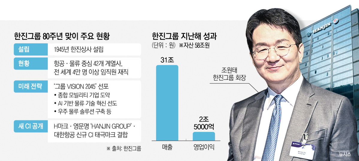 Á¶Çö¹Î ÇÑÁø »çÀåÀº ¡°ÇÑÁø±×·ìÀº Áö³ÇØ ÀÚ»ê 58Á¶ ¿ø, ¸ÅÃâ 31Á¶ ¿ø, ¿µ¾÷ÀÌÀÍ 2Á¶5000¾ï ¿øÀ̶ó´Â ¼º°ú¸¦ ´Þ¼ºÇϸç, Ç×°ø°ú ¹°·ù¸¦ Áß½ÉÀ¸·Î ÇÑ 42°³ °è¿»ç¿Í Àü ¼¼°è 4¸¸ ¸í ÀÌ»óÀÇ ÀÓÁ÷¿øÀÌ ÇÔ²²ÇÏ´Â ±×·ìÀ¸·Î ¼ºÀåÇß´Ù¡±¸ç ¡°80³â Àü â¾÷ÁÖÀÇ µµÀü°ú °³Ã´Á¤½ÅÀ¸·Î Ãâ¹ßÇÑ ÇÑÁø±×·ìÀº ÀÌÁ¦ ´Ù°¡¿Ã 100³âÀ» ÇâÇØ ´Ù½Ã Çѹø µµ¾àÇÒ °Í¡±À̶ó°í Æ÷ºÎ¸¦ ¹àÇû´Ù.