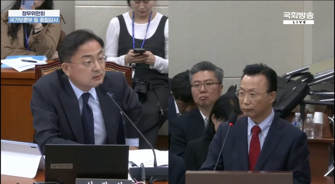 ±¹È¸ Á¤¹«À§¿øÈ¸ÀÇ ±Ý³âµµ ¸¶Áö¸· ±¹Á¤°¨»ç¿¡¼ ±èõ½Ä ÅëÀÏ¿¬±¸¿ø ¿øÀåÀÇ ¿ª»ç°üÀÌ µµ¸¶ À§¿¡ ¿Ã¶ú´Ù. ´õºÒ¾î¹ÎÁÖ´çÀ» Æ÷ÇÔÇÑ ¹üÁøº¸Áø¿µ¿¡¼ °³ÀÎ ÀÚ°ÝÀÌ ¾Æ´Ñ °ø°ø±â°üÀåÀ¸·Î¼ ºÎÀûÀýÇÑ ¹ß¾ðÀ̾úÀ½À» ÁöÀûÇÏ¸ç »ç°ú¸¦ ¿ä±¸Çß°í ±è ¿øÀåÀÌ À̸¦ ÀϺΠ¼ö¿ëÇß´Ù.