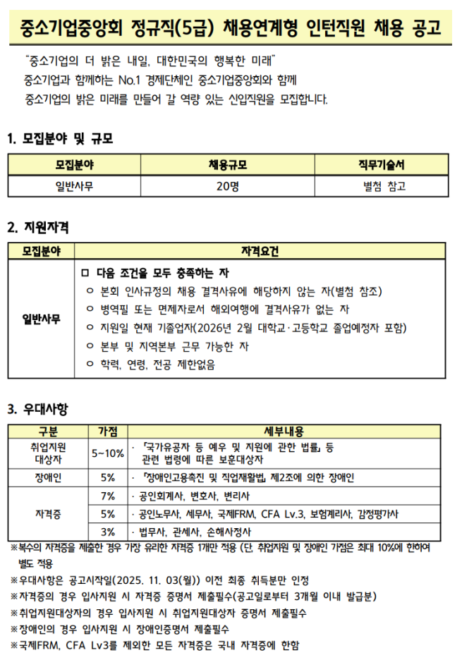 ÇÑÆí ¼·ùÁ¢¼ö´Â 7ÀϺÎÅÍ 21ÀϱîÁö ÁøÇàµÇ¸ç ä¿ë °ü·Ã Ãß°¡Á¤º¸´Â Áß¼Ò±â¾÷Áß¾Óȸ ÀÔ»ç Áö¿ø Àü¿ë »çÀÌÆ®¿Í Áß¼Ò±â¾÷Áß¾Óȸ ȨÆäÀÌÁö¸¦ ÂüÁ¶ÇÏ¸é µÈ´Ù.