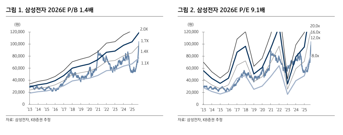 KBÁõ±ÇÀº »ï¼ºÀüÀÚ¿¡ ´ëÇØ ¿£ºñµð¾Æ¿ÍÀÇ Çù·ÂÀÌ º»°ÝȵǸç HBM(°í´ë¿ªÆø¸Þ¸ð¸®)¡¤ÆÄ¿îµå¸® µî Àü »ç¾÷ ºÎ¹®¿¡¼ ½Ã³ÊÁö°¡ ±â´ëµÈ´Ù°í Æò°¡Çß´Ù. ÅõÀÚÀǰßÀº ¡®¸Å¼ö(Buy)¡¯, ¸ñÇ¥ÁÖ°¡´Â 15¸¸ ¿ø, ¹ÝµµÃ¼ ¾÷Á¾ ³» ÃÖ¼±È£ÁÖ·Î Á¦½ÃÇß´Ù.
