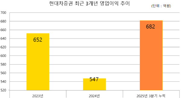 Çö´ëÂ÷Áõ±ÇÀÇ 3ºÐ±â ¿µ¾÷ÀÌÀÍÀº Àü³âµ¿±â´ëºñ 3.3% °¨¼ÒÇÑ 141¾ï¿øÀ¸·Î Áý°èµÆ´Ù. 100¾ï¿øÀÌ ³Ñ´Â ÀÏȸ¼º ºñ¿ëÀ» ¹Ý¿µÇÑ ¼öÄ¡´Ù.