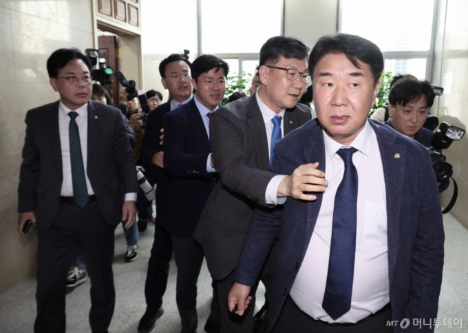 Á¤È¸ ¼±Æ÷ ÈÄ ÀÇ¿øµéÀÌ È¸ÀÇÀåÀ» ³ª°¡´Â °úÁ¤¿¡¼ ¼Û¾ð¼® ±¹¹ÎÀÇÈû ¿ø³»´ëÇ¥¿Í À̱âÇå ¹ÎÁÖ´ç ÀÇ¿øÀÌ ¹èÄ¡±â¸¦ ÇÏ´Â µî ¹°¸®ÀûÀ¸·Î ºÎµúÈ÷±âµµ Çß´Ù.