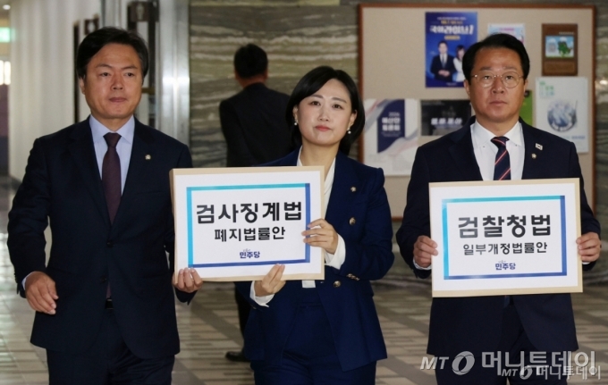 ±èÇöÁ¤, ¹é½Â¾Æ, ¹®±ÝÁÖ ¹ÎÁÖ´ç ¿ø³»´ëº¯ÀÎÀº 14ÀÏ ¿ÀÀü ¼¿ï ¿©Àǵµ ±¹È¸ ÀǾȰú¿¡ '°ËÂûû¹ý ÀϺΰ³Á¤¾È, °Ë»ç¡°è¹ý ÆóÁö¾È' °³Á¤¾ÈÀ» Á¦ÃâÇß´Ù. ±èº´±â ´ç ¿ø³»´ëÇ¥°¡ ´ëÇ¥ ¹ßÀÇÇßÀ¸¸ç ¹ÎÁÖ´çÀº ÀÇ¿øÃÑȸ¸¦ °ÅÃÄ ³ª¸ÓÁö ÀÇ¿øµé ÀǰßÀ» ¼ö·ÅÇØ ¿¬³» ó¸®Çϰڴٴ ÀÔÀåÀÌ´Ù.