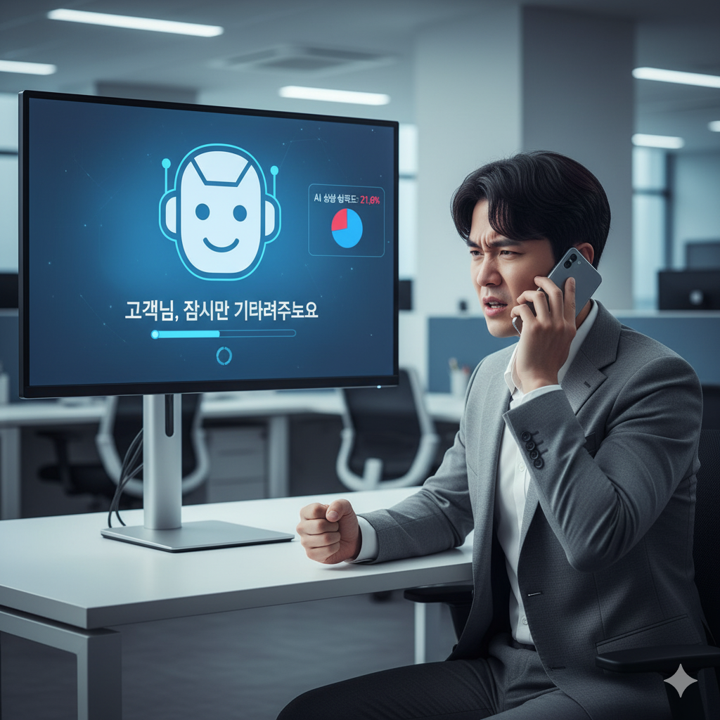 ÇÏÁö¸¸ AI µµÀÔ ¼º°ú°¡ °í°´ ¸¸Á·À¸·Î Á÷°áµÇÁö´Â ¾Ê´Â ¸ð½ÀÀÌ´Ù. 10¿ù KB±ÝÀ¶ÁöÁÖ °æ¿µ¿¬±¸¼Ò°¡ ¹ß°£ÇÑ 'AI¿Í Àΰ£ÀÇ Çù¾÷À» ÅëÇÑ ±ÝÀ¶ »ó´ã Çõ½Å' º¸°í¼¿¡ µû¸£¸é 'AI »±»±ÀÌ'·Î ºÒ¸®´Â ºñÈ¿À²Àû »ó´ã °æÇèÀÌ È®»êµÇ¸ç °í°´ ºÒ¸¸ÀÌ ´©ÀûµÇ°í ÀÖ´Ù.