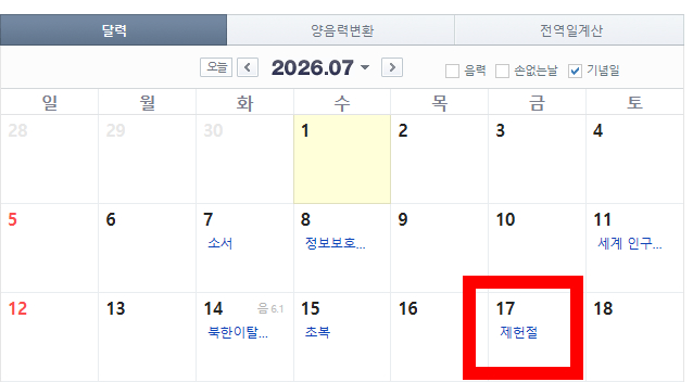 ³»³âºÎÅÍ Á¦ÇåÀý(7¿ù 17ÀÏ)ÀÌ ´Ù½Ã °øÈÞÀÏ·Î ºÎȰÇÒ °¡´É¼ºÀÌ Ä¿Á³´Ù.