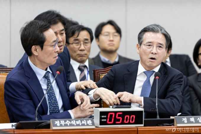 ±è ½ÇÀåÀÇ ¸ñ¼Ò¸®°¡ ³ô¾ÆÁöÀÚ ¿ì»óÈ£ ´ëÅë·É½Ç Á¤¹«¼ö¼®°ú ±èº´¿í ´ëÅë·É½Ç Á¤¹«ºñ¼°ü µîÀÌ ±è ½ÇÀåÀ» ¸»·È´Ù. ±è ½ÇÀåÀº "°¡¸¸È÷ °è½Ã¶ó. À§ÁõÀ¸·Î °í¹ßÇÑ´Ù´Â °Íµµ ±×·¸°í"¶ó°í Çß´Ù.
