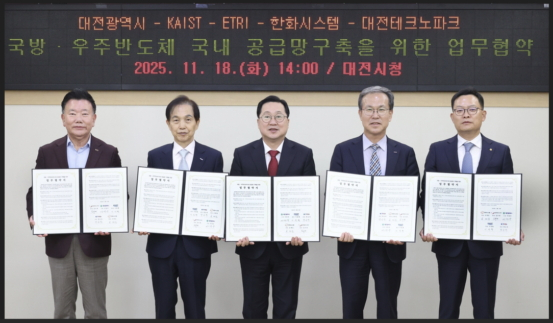 ´ëÀü½Ã´Â 18ÀÏ ½Ãû¿¡¼ KAIST, Çѱ¹ÀüÀÚÅë½Å¿¬±¸¿ø(ETRI), ÇÑȽýºÅÛ, ´ëÀüÅ×Å©³ëÆÄÅ©¿Í '±¹¹æ¡¤¿ìÁֹݵµÃ¼ ±¹³» °ø±Þ¸Á ±¸ÃàÀ» À§ÇÑ ¾÷¹«Çù¾à'À» Çß´Ù.