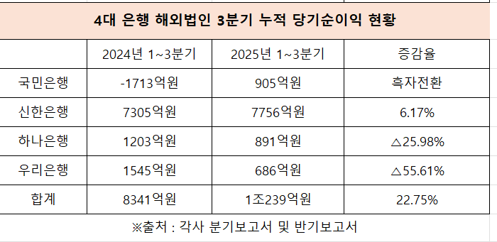 4´ë ½ÃÁßÀºÇàÀÇ 3ºÐ±â ÇØ¿Ü ½ÇÀûÀÌ ¶Ñ·ÇÇÏ°Ô °¥·È´Ù. ½ÅÇÑÀºÇàÀÇ ¡®µ¶ÁÖ¡¯¿Í KB±¹¹ÎÀºÇàÀÇ ÈæÀÚ ÀüȯÀ¸·Î Àüü ÇØ¿Ü¹ýÀÎ ¼øÀÌÀÍÀº ´Ã¾úÁö¸¸, ÇϳªÀºÇà°ú ¿ì¸®ÀºÇàÀº ·¯½Ã¾Æ¡¤Àεµ³×½Ã¾Æ ¹ýÀο¡¼ ¿¹»óÄ¡ ¸øÇÑ ¾ÇÀ縦 ¸ÂÀ¸¸ç µÞ°ÉÀ½ÁúÃÆ´Ù.