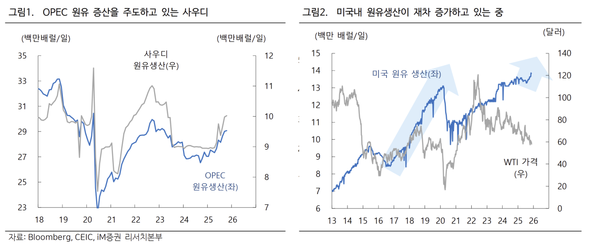 iMÁõ±ÇÀº 27ÀÏ ¼®À¯¼öÃâ±¹±â±¸(OPEC) ¹× ¹Ì±¹ ¿øÀ¯»ý»ê È®´ë¿¡ µû¸¥ ¿øÀ¯½ÃÀå °úÀ×°ø±Þ°ú ·¯-¿ì Á¾Àü ±â´ë°¨¿¡ ±¹Á¦ À¯°¡ Ãß°¡ Ç϶ô ¾Ð·Â ³ô¾ÆÁö°í ÀÖ´Ù°í Àü¸ÁÇß´Ù. ¹Ì±¹ ¿¡³ÊÁöû(EIA)ÀÌ 2026³â ±¹Á¦À¯°¡(WTI ±âÁØ) Æò±Õ 50´Þ·¯ ÃÊ¹Ý ¼öÁØÀ¸·Î ³»´Ùº» Á¡µµ ÁÖ¸ñÇß´Ù.