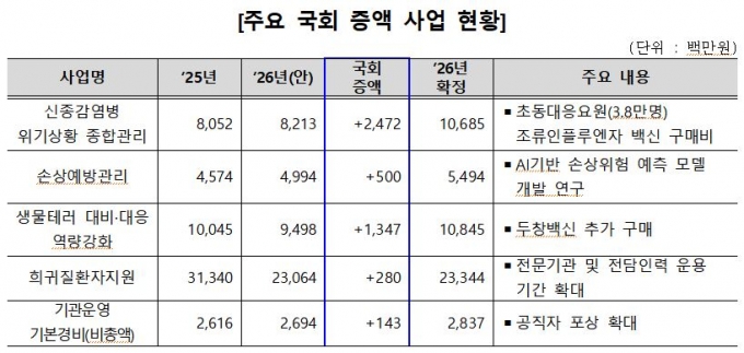 µðÁöÅÐ ÇコÄɾî Çõ½Å¼ºÀå ü°è ±¸ÃàÀ» À§ÇÑ °íǰÁú ¹ÙÀÌ¿À ºòµ¥ÀÌÅÍ ±¸Ãà »ç¾÷°ú Èñ±Í¡¤³Ä¡Áúȯ °ü·Ã ¿¬±¸¸¦ È®´ëÇÏ´Â ÇÑÆí, ¼Ò¾Æºñ¸¸¡¤¼Ò¾Æ´ç´¢, ³ëÀÎÁßÁõÈ£Èí±âÁúȯ µî °Ç°Ãë¾à°èÃþÀÇ º¸È£¸¦ À§ÇÑ ¿¬±¸ ¿¹»êÀ» ½Å±Ô·Î Æí¼ºÇÏ´Â µî º¸°ÇÀÇ·á ¿¬±¸±â¹ÝÀ» °ÈÇϱâ À§ÇÑ ÅõÀÚ¸¦ Áö¼Ó È®´ëÇÒ ¿¹Á¤ÀÌ´Ù.