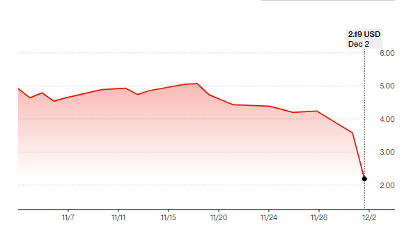 2ÀÏ(ÇöÁö½Ã°£) ºí·ë¹ö±×Åë½Å¡¤ÆÄÀ̳½¼ÈŸÀÓ½º(FT) µî¿¡ µû¸£¸é Æ®·³ÇÁ ´ëÅë·ÉÀÇ Àå³² µµ³Îµå Æ®·³ÇÁ ÁִϾî¿Í Â÷³² ¿¡¸¯ Æ®·³ÇÁ°¡ ÅõÀÚÇÑ ¾Æ¸Þ¸®Ä ºñÆ®ÄÚÀÎÀÇ ÁÖ°¡´Â À̳¯ ´º¿åÁõ½Ã¿¡¼ ÀüÀÏ ´ëºñ 38.83% Ç϶ôÇÑ 2.19´Þ·¯·Î °Å·¡¸¦ ¸¶ÃÆ´Ù. ÀÌ´Â »óÀåÀÏ Á¾°¡(8.04´Þ·¯) ´ëºñ ¹«·Á 73% ¶³¾îÁø ¼öÁØÀÌ´Ù. À̳¯ Ç϶ôÀ¸·Î ȸ»çÀÇ ½Ã°¡ÃѾ×Àº 10¾ï´Þ·¯(¾à 1Á¶4692¾ï¿ø)°¡ Áõ¹ßÇÑ 20¾ï´Þ·¯¸¦ ±â·ÏÇß´Ù.
