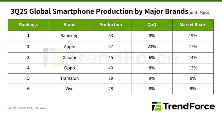 »þ¿À¹Ì(·¹µå¹Ì¡¤Æ÷ÄÚ Æ÷ÇÔ)´Â ¾à 4500¸¸ ´ë·Î 3À§¸¦ ±â·ÏÇß´Ù. ¿ÀÆ÷(¿øÇ÷¯½º¡¤¸®¾ó¹Ì Æ÷ÇÔ)´Â Àεµ¿Í µ¿³²¾Æ, Áß³²¹Ì ¼ö¿ä ȸº¹¿¡ ÈûÀÔ¾î ¾à 4000¸¸ ´ë¸¦ »ý»êÇØ 4À§¸¦ Â÷ÁöÇß´Ù. Æ®·£¼Ç(TECNO¡¤Infinix¡¤itel)Àº ¾ÆÇÁ¸®Ä«¿Í ¾Æ½Ã¾Æ ½ÅÈï½ÃÀå Áß½ÉÀÇ °ßÁ¶ÇÑ ¼ö¿ä·Î 2900¸¸ ´ë ÀÌ»óÀ» »ý»êÇϸç 5À§¿¡ ¿Ã¶ú´Ù.
