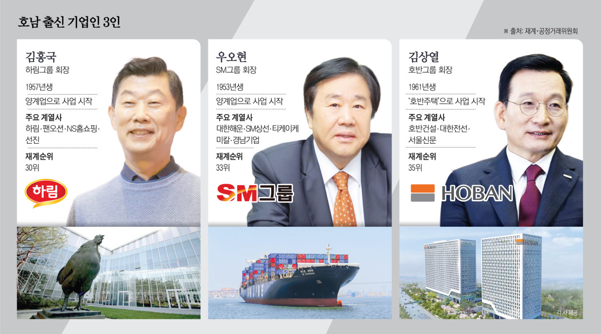 È£³²¿¡¼ Ãâ¹ßÇÑ ±â¾÷ÀεéÀÌ °ú°¨ÇÑ ÀμöÇÕº´(M&A)À» ¹ßÆÇÀ¸·Î Àç°èÀÇ ÇÙ½ÉÃàÀ¸·Î ºÎ»óÇϰí ÀÖ´Ù. ±èÈ«±¹ Çϸ²±×·ì ȸÀå, ¿ì¿ÀÇö SM±×·ì ȸÀå, ±è»ó¿ È£¹Ý±×·ì ȸÀå µîÀº ¸ðµÎ ¿¾ÇÇÑ È¯°æÀ» µó°í »ç¾÷ ±â¹ÝÀ» ½º½º·Î Àϱº 'ÀÚ¼ö¼º°¡Çü °æ¿µÀÚ'·Î, M&A¸¦ ¼ºÀå ¿£Áø »ï¾Æ Áö¿ª ±â¾÷À» Àü±¹±¸ ´ë±â¾÷À¸·Î ²ø¾î¿Ã·È´Ù´Â Æò°¡¸¦ ¹Þ´Â´Ù. ƯÈ÷ ¼¼ ȸÀåÀº ¾÷Á¾ Àüȯ°ú ´ëÇü Àμö¿¡ ÁÖÀúÇÏÁö ¾Ê´Â °á´Ü·ÂÀ¸·Î ±âÁ¸ Àç°è ƲÀ» Èçµé¸ç »õ·Î¿î ¼ºÀå ¸ðµ¨À» Á¦½ÃÇß´Ù´Â Á¡¿¡¼ ÁÖ¸ñ¹Þ°í ÀÖ´Ù.