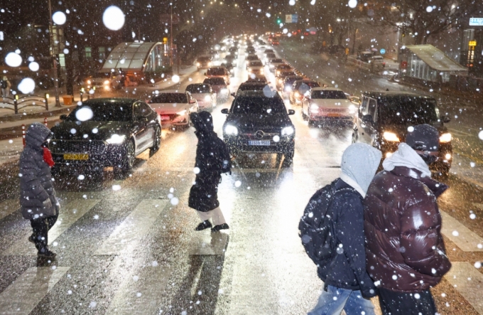 À̳¯ ¼¿ï ¼ºµ¿±¸ ¿Õ½Ê¸® Ãâ±Ù±æ¿¡µµ Àü³¯ Æø¼³ÀÇ ¿µÇâÀÌ °í½º¶õÈ÷ ³²¾Ò´Ù. ¿Õ½Ê¸®¿ª 6¹ø Ãⱸ ÀÏ´ë¿£ °£¹ã¿¡ ½×ÀÎ ´«ÀÌ ³ìÁö ¾Ê¾Æ °÷°÷¿¡ 1~2§®°¡·® ½×¿´°í, ÁÖº¯¿¡ ÁÖÂ÷µÈ Â÷·®¡¤Æ®·° À§¿¡µµ ´«ÀÌ µÎ²®°Ô µ¤¿´´Ù. ÀϺΠ±¸Ã» Á÷¿øµéÀº Á¦¼³¿ë »ðÀ» µé°í ´«À» Á¤¸®ÇÏ´Â ÀÛ¾÷ ÁßÀ̾ú´Ù.