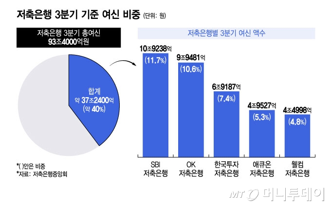 Áö³ 3ºÐ±â ±âÁØ ÀúÃàÀºÇà ¾÷°èÀÇ ÃÑ¿©½ÅÀº 93Á¶4000¾ï¿øÀÌ´Ù. ¾÷°è 1À§ÀÎ SBIÀúÃàÀºÇàÀÇ ÃÑ¿©½ÅÀÌ 10Á¶9238¾ï¿øÀ¸·Î °¡Àå ¸¹´Ù. ÀÌ¾î ¡âOKÀúÃàÀºÇà 9Á¶9481¾ï¿ø ¡âÇѱ¹ÅõÀÚÀúÃàÀºÇà 6Á¶9187¾ï¿ø ¡â¾ÖÅ¥¿ÂÀúÃàÀºÇà 4Á¶9527¾ï¿ø ¡âÀ£ÄÄÀúÃàÀºÇà 4Á¶4998¾ï¿ø ¼øÀÌ´Ù.