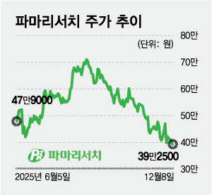 8ÀÏ Çѱ¹°Å·¡¼Ò¿¡ µû¸£¸é ÆÄ¸¶¸®¼Ä¡ÀÇ ÁÖ°¡´Â À̳¯ Á¾°¡ ±âÁØ 39¸¸2500¿øÀ¸·Î, Áö³ 8¿ù ¸» ±â·ÏÇÑ 52ÁÖ ½Å°í°¡ ´ëºñ ¾à 45% Ç϶ôÇß´Ù. Áö³ 1ÀÏ 40¸¸¿ø¼±ÀÌ ¹«³ÊÁø µ¥ ÀÌ¾î ´Ù½Ã Çѹø 40¸¸¿ø ¾Æ·¡·Î ³»·Á¿Â °ÍÀÌ´Ù. ºÒ°ú 3°³¿ù Àü¸¸ ÇØµµ 80¸¸¿øÀ» ¹Ù¶óº¸´ø ÁÖ°¡´Â ÀÌÈÄ ¶Ñ·ÇÇÑ ¹Ýµî ¾øÀÌ Ç϶ô¼¼¸¦ À̾°í ÀÖ´Ù.