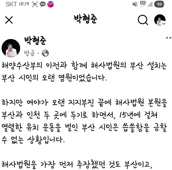 ¹ÚÇüÁØ ºÎ»ê½ÃÀåÀÌ 9ÀÏ "ÇØ»ç¹ý¿ø Ç×¼Ò ÀçÆÇºÎ´Â ¹Ýµå½Ã ºÎ»ê¿¡ ¼³Ä¡ÇØ¾ß ÇÑ´Ù"°í ¿ä±¸Çß´Ù.