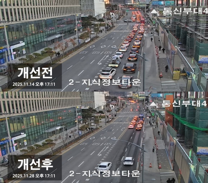 ½Ã´Â AI ±â¹Ý ½º¸¶Æ® ±³Â÷·Î ½Ã½ºÅÛÀ¸·Î ÀÏÁ¤ ±â°£ ÇØ´ç ±¸°£ÀÇ ±³Åë·®À» ¸ð´ÏÅ͸µÇÏ¸ç ½Ç½Ã°£ Á¤º¸¸¦ ¼öÁýÇß´Ù. ºÐ¼® °á°ú °úõ´ë·Î Áö½ÄÁ¤º¸Å¸¿î ±¸°£ÀÇ ¹æÇ⺰ ÅëÇà·®ÀÌ 35~49% °¨¼ÒÇÑ °ÍÀ¸·Î ³ªÅ¸³ª ÀÌ¿¡ ¸ÂÃç ±âÁ¸ 254ÃÊ¿´´ø ½ÅÈ£Áֱ⸦ 230ÃÊ·Î ÁÙÀ̰í, °úõ´ë·Î7±æ¡¤8±æ µî µ¿¼Ãà ½ÅÈ£½Ã°£À» ´Ã·È´Ù.