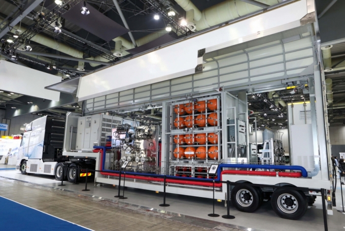 Çö´ëÂ÷±×·ìÀÇ 'À̵¿Çü ¼ö¼Ò ÃæÀü¼Ò'´Â Æ®·°À̳ª ´ëÇü Æ®·¹ÀÏ·¯¿¡ ¼ö¼Ò¾ÐÃà±â¡¤ÀúÀå¿ë±â¡¤³Ã°¢±â¡¤ÃæÀü±â µî ¼ö¼Ò ÃæÀü ÇÙ½É ¼³ºñ¸¦ žÀçÇÑ Á¦Ç°ÀÌ´Ù. À̵¿ÀÌ °¡´ÉÇϰí Á¼Àº ¸éÀû¿¡ ¼³Ä¡ÇÒ ¼ö ÀÖ´Â °ÍÀÌ Æ¯Â¡ÀÌ´Ù.