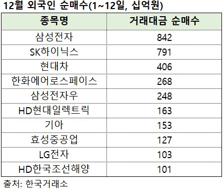°°Àº ±â°£ ¿Ü±¹ÀÎÀÌ °¡Àå ¸¹ÀÌ ¼ø¸Å¼ö ÇÑ Á¾¸ñÀº »ï¼ºÀüÀÚ(8420¾ï ¿ø), SKÇÏÀ̴нº(7910¾ï ¿ø), Çö´ëÂ÷(4060¾ï ¿ø), ÇÑÈ¿¡¾î·Î½ºÆäÀ̽º(2680¾ï ¿ø), HDÇö´ëÀÏ·ºÆ®¸¯(1630¾ï ¿ø) ¼øÀÌ´Ù.