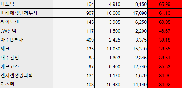 ¿¡ÇÁ¾Ø°¡À̵忡 µû¸£¸é À̹ø ÁÖ ÄÚ½º´Ú ½ÃÀå¿¡¼ °¡Àå ¸¹ÀÌ »ó½ÂÇÑ Á¾¸ñÀº ³ª³ëÆÀÀÌ´Ù. ³ª³ëÆÀÀº 65.99% ¿À¸¥ 8150¿ø¿¡ °Å·¡¸¦ ¸¶ÃÆ´Ù.