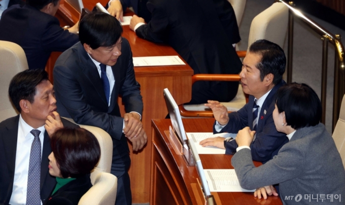 ÇÑÆí À̳¯ º»È¸ÀÇ¿¡¼´Â À嵿Çõ ±¹¹ÎÀÇÈû ´ëÇ¥°¡ 24½Ã°£ÀÇ ¿ª´ë ÃÖÀå Çʸ®¹ö½ºÅ͸¦ ¼ÒÈÇØ³Â´Ù. ÁöÁöºÎÁøÇÑ ¾ß±Ç °áÁýÀÇ ½ÅȣźÀÌ µÉÁö °ü½ÉÀÌ ½ò¸°´Ù. ¾ß´ç ÀÇ¿øµéÀÇ ±â¸³¹Ú¼ö ¼Ó¿¡ ¿¬´Ü¿¡¼ ³»·Á¿Â Àå ´ëÇ¥´Â ÀÌÀç¸í ´ëÅë·ÉÀ» ÇâÇØ "Çå¹ý ¼öÈ£ ÀÇÁö°¡ ÀÖ´Ù¸é ¹Ýµå½Ã (³»¶õÀü´ãÀçÆÇºÎ¹ý¿¡ ´ëÇØ) ÀçÀǿ䱸±Ç(°ÅºÎ±Ç)À» Çà»çÇØ¾ß ÇÒ °Í"À̶ó°í Çß´Ù.