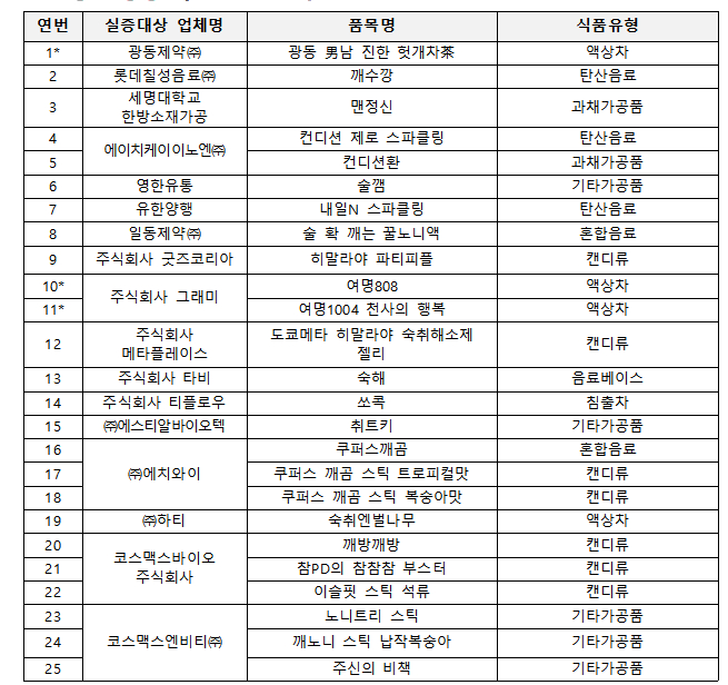 ½Ä¾àó´Â À̵é Á¦Ç°À» Æ÷ÇÔÇØ ¼÷ÃëÇØ¼Ò °ü·Ã Ç¥ÇöÀ» Ç¥½Ã¡¤±¤°íÇÏ´Â 28ǰ¸ñ¿¡ ´ëÇØ ÀÎüÀû¿ë½ÃÇè µî ½ÇÁõÀڷḦ °ËÅäÇÑ °á°ú, 25ǰ¸ñ¿¡¼ ¼÷ÃëÇØ¼Ò È¿°ú°¡ È®Àεƴٰí 29ÀÏ ¹àÇû´Ù.