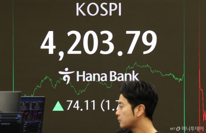 ¿ÃÇØ Áõ½Ã ÆóÀåÀ» ÇÏ·ç ¾ÕµÎ°í ÄÚ½ºÇǰ¡ 4200¼±À» ȸº¹Çß´Ù. ¹ÝµµÃ¼ ½´ÆÛ»çÀÌŬ ±â´ë°¨ÀÌ Ä¿Áö¸é¼ »ï¼ºÀüÀÚ¿Í SKÇÏÀ̴нº°¡ Áö¼ö »ó½ÂÀ» À̲ø¾ú±â ¶§¹®ÀÌ´Ù. ¿©±â¿¡ ¿ø/´Þ·¯ ȯÀ²ÀÌ Ç϶ôÇÏ¸é¼ ¿Ü±¹ÀÎ ÅõÀÚÀڵ鵵 ¼ø¸Å¼ö¿¡ ³ª¼¹´Ù.
