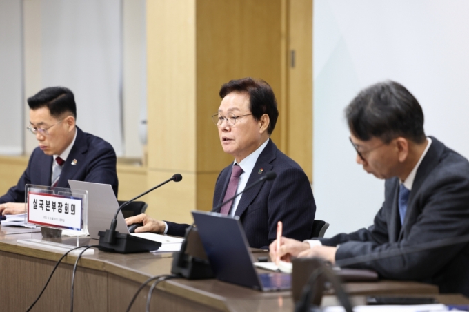 ¹Ú¿Ï¼ö °æ³²µµÁö»ç°¡ 29ÀÏ ½Ç±¹º»ºÎÀå ȸÀǸ¦ ¿°í ±èÇØ°øÇ×ÀÇ ¿¾ÇÇÑ ÀÎÇÁ¶ó °³¼±À» À§ÇÑ Á¤ºÎÀÇ Áï°¢ÀûÀÎ ´ëÃ¥ ¸¶·Ã°ú ºÎ»ê¡¤°æ³² ÇàÁ¤ÅëÇÕÀÇ ÁÖ¹ÎÅõÇ¥ ¿øÄ¢À» °Á¶Çß´Ù.