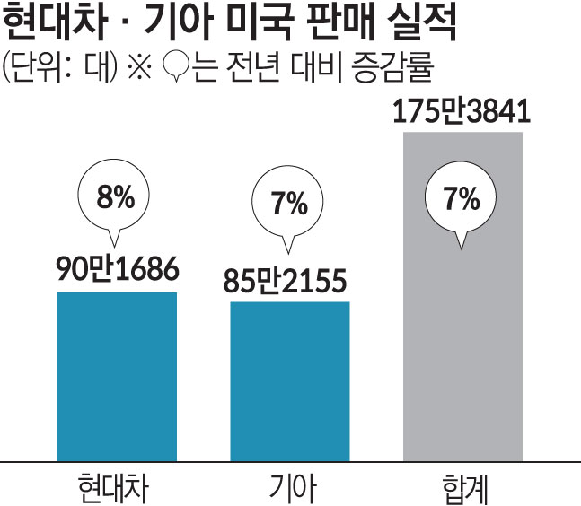 5ÀÏ Çö´ëÂ÷¡¤±â¾Æ¿¡ µû¸£¸é Áö³ÇØ ¹Ì±¹ ÆÇ¸Å´Â ÃÑ 175¸¸3841´ë·Î Áý°èµÆ´Ù. Àü³â ´ëºñ 7% Áõ°¡ÇÑ ¼öÄ¡·Î ¾ç»ç ÇÕ»ê ±âÁØ ¿ª´ë ÃÖ´ë ½ÇÀûÀÌ´Ù. ºê·£µåº°·Î´Â Çö´ëÂ÷°¡ 90¸¸1686´ë¸¦ ÆÇ¸ÅÇØ 8% ¼ºÀåÇß°í ±â¾Æ´Â 85¸¸2155´ë·Î 7% ´Ã¾ú´Ù. µÎ ºê·£µå ¸ðµÎ ¹Ì±¹ ÁøÃâ ÀÌÈÄ ´ÜÀÏ ¿¬µµ ±âÁØ ÃÖ°í ÆÇ¸Å ±â·ÏÀ» °æ½ÅÇß´Ù.