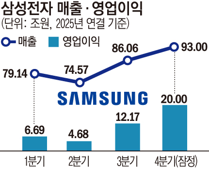 »ï¼ºÀüÀÚ´Â 8ÀÏ Áö³ÇØ 4ºÐ±â ÀáÁ¤ ½ÇÀû °ø½Ã¸¦ ÅëÇØ ¿¬°á ±âÁØ ¸ÅÃâ 93Á¶ ¿ø, ¿µ¾÷ÀÌÀÍ 20Á¶ ¿øÀ» ±â·ÏÇß´Ù°í ¹àÇû´Ù. Àü³â µ¿±â ´ëºñ ¸ÅÃâÀº 22.71%, ¿µ¾÷ÀÌÀÍÀº 208.17% Áõ°¡Çß´Ù. ºÐ±â ±âÁØ ¸ÅÃâ°ú ¿µ¾÷ÀÌÀÍ ¸ðµÎ »ç»ó ÃÖ´ëÄ¡´Ù.