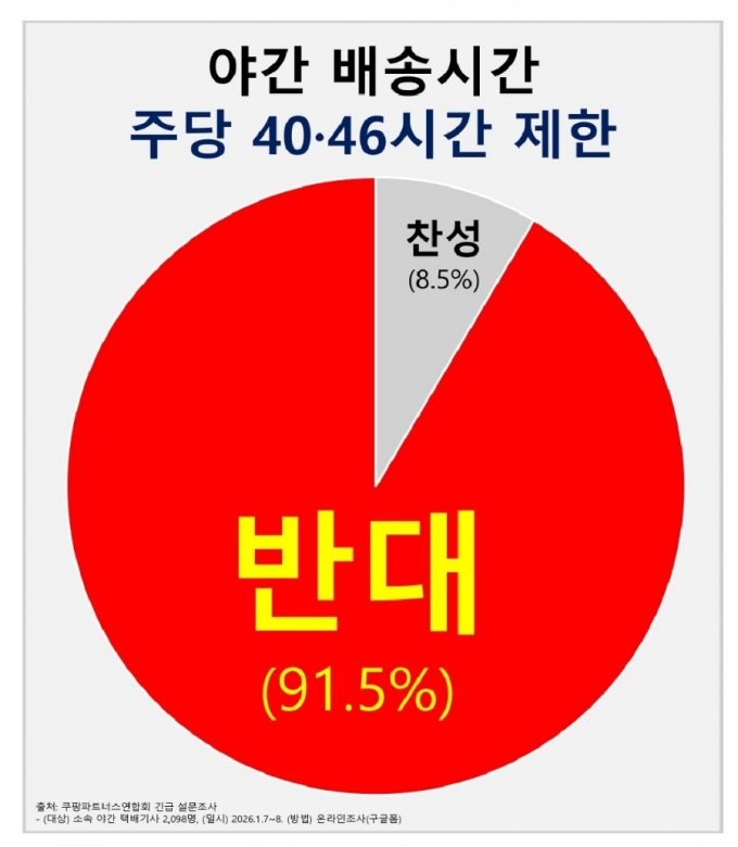 ÄíÆÎ ¹è¼Û ±â»ç »ó´ç¼ö°¡ ¾ß°£ ³ëµ¿½Ã°£À» ÁÖ 40~46½Ã°£À¸·Î Á¦ÇÑÇØ¾ß ÇÑ´Ù´Â °í¿ë³ëµ¿ºÎ ¿¬±¸¿ë¿ª °á°ú¿¡ ¹Ý´ë ÀÔÀåÀ» ¹àÇû´Ù.