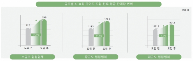 °¢ ¾÷üÀÇ ÆÇ¸Å µî±Þ°ú ¸ÅÃâ¾×À» Á¾ÇÕÇØ ±Ô¸ð¸¦ ¼¼ ¹üÁÖ·Î ³ª´³´Ù. ¼Ò±Ô¸ð ÀÔÁ¡ ¾÷üÀÇ ÆÇ¸Å·®Àº AI ¼ºñ½º µµÀÔ ÀÌÈÄ 35.9%ÀÇ Áõ°¡À²À» ±â·ÏÇß´Ù. ÀÌ´Â Áß±Ô¸ð(¸ÅÃâ 10.2%, ÆÇ¸Å·® 11.4%)³ª ´ë±Ô¸ð ¾÷ü(¸ÅÃâ 6.7%, ÆÇ¸Å·® 5.7%)ÀÇ »ó½Â ÆøÀ» Å©°Ô »óȸÇÑ´Ù.