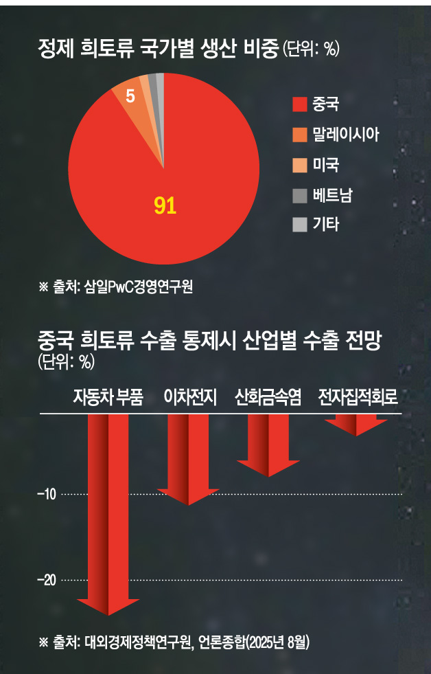 ±Û·Î¹ú ÀÚ¿ø ÆÐ±Ç °æÀïÀÌ °ÝȵǴ °¡¿îµ¥, Áß±¹ÀÌ Çѱ¹À» ´ë»óÀ¸·Î ¡®ÈñÅä·ù ¼öÃâ ÅëÁ¦¡¯ Ä«µå¸¦ ²¨³» µé °æ ±¹³» »ê¾÷ Àü¹Ý¿¡ Ãæ°ÝÀÌ ºÒ°¡ÇÇÇÒ Àü¸ÁÀÌ´Ù. ±×Áß¿¡¼µµ °¡Àå Å« Ÿ°ÝÀÌ ¿¹»óµÇ´Â ºÐ¾ß´Â ÀÚµ¿Â÷ »ê¾÷ÀÌ´Ù. Àü±âÂ÷¡¤ÇÏÀ̺긮µåÂ÷¿¡ ÇʼöÀûÀÎ ±¸µ¿ ¸ðÅÍ, Á¦µ¿ ÀåÄ¡, °¢Á¾ ¼¾¼¿¡ ÈñÅä·ù ±â¹Ý ¿µ±¸ÀÚ¼®ÀÌ ±¤¹üÀ§ÇÏ°Ô »ç¿ëµÇ±â ¶§¹®ÀÌ´Ù.