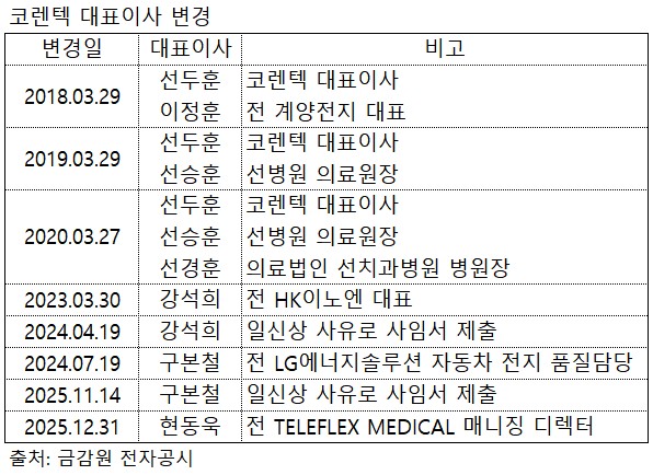 ÄÚ·»ÅØÀÇ °æ¿µÁø ±³Ã¼´Â À̹øÀÌ Ã³À½Àº ¾Æ´Ï´Ù. 2023³â 3¿ù ¼±Àӵƴø °¼®Èñ Àü ´ëÇ¥´Â ÀÓ±â 1³âÀ» °Ü¿ì ä¿î Áö³ÇØ 4¿ù ¹°·¯³µ´Ù. µÚ¸¦ ÀÌ¾î µîÆÇÇÑ LG¿¡³ÊÁö¼Ö·ç¼Ç Ãâ½ÅÀÇ ±¸º»Ã¶ Àü ´ëÇ¥ ¿ª½Ã ¼±ÀÓ 4°³¿ù ¸¸¿¡ ÁöÈÖºÀÀ» ³»·Á³õ¾Ò´Ù. ° Àü ´ëÇ¥¿Í ±¸ Àü ´ëÇ¥ »çÀÌ, ±×¸®°í À̹ø Çö ´ëÇ¥ ¼±ÀÓ Àü±îÁö ¼ö°³¿ù¾¿ ´ëÇ¥ÀÌ»ç °ø¹é±â°¡ ¹ß»ýÇÏ¸ç °æ¿µ Àϰü¼º¿¡ ´ëÇÑ ¿ì·Áµµ Á¦±âµÆ´Ù.