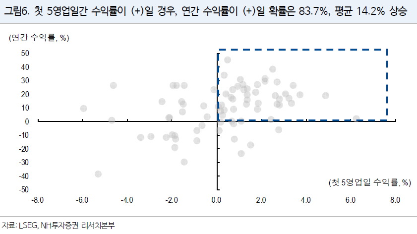 12ÀÏ NHÅõÀÚÁõ±Ç ºÐ¼®¿¡ µû¸£¸é ½Å³â ù 5¿µ¾÷ÀÏ µ¿¾ÈÀÇ ÁֽĽÃÀå ¼öÀÍ·üÀÌ Ç÷¯½º(+)¸¦ ±â·ÏÇÒ °æ¿ì, ±×ÇØ ¿¬°£ ¼öÀÍ·üÀÌ Ç÷¯½º·Î ¸¶°¨µÉ È®·üÀº 83.7%¿¡ ´ÞÇÏ´Â °ÍÀ¸·Î Á¶»çµÆ´Ù.