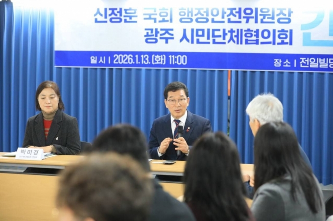 ±¹È¸ ÇàÁ¤¾ÈÀüÀ§¿øÀåÀÎ ½ÅÁ¤ÈÆ ÀÇ¿øÀÌ 13ÀÏ ÀüÀϺôµù245¿¡¼ ±¤ÁֽùδÜüÇùÀÇȸ ´ëÇ¥µé°ú °£´ãȸ¸¦ °®°í ±¤ÁÖ¡¤Àü³² ÅëÇÕ°ú °ü·ÃÇÑ ½Ã¹Î»çȸÀÇ ÀǰßÀ» ûÃëÇß´Ù°í ¹àÇû´Ù.
