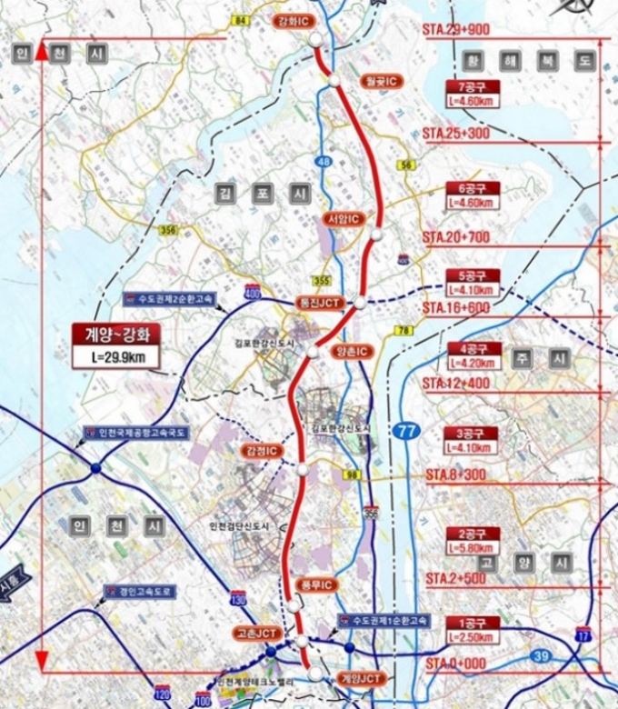 °è¾ç~°È °í¼Óµµ·Î´Â ÀÎõ½Ã °è¾ç±¸ »ó¾ßµ¿¿¡¼ ±èÆ÷¸¦ °ÅÃÄ °È±º ¼±¿ø¸é ½ÅÁ¤¸®±îÁö ÃÑ¿¬Àå 29.88km, ¿Õº¹ 4~6Â÷·Î ±Ô¸ð·Î °Ç¼³µÇ´Â ±¹°¡ °£¼±µµ·Î¸ÁÀÌ´Ù. ÃÑ»ç¾÷ºñ ¾à 2Á¶9152¾ï¿øÀÌ ÅõÀԵǸç 2032³â ÁذøÀ» ¸ñÇ¥·Î ÃßÁø ÁßÀÌ´Ù.