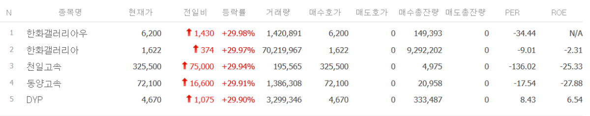 ÇÑȰ¶·¯¸®¾Æ´Â Àü °Å·¡ÀÏ ´ëºñ 29.97%(374¿ø) ¿À¸¥ 1622¿ø¿¡ °Å·¡¸¦ ¸¶Ä¡¸ç °¡°ÝÁ¦ÇÑÆø±îÁö »ó½ÂÇß´Ù. ÇÑȰ¡ ÀÎÀû ºÐÇÒÀ» °áÁ¤ÇÏ¸é¼ °è¿»ç ÁÖ°¡°¡ µ¿¹Ý °¼¼¸¦ º¸ÀÎ ¿µÇâÀ¸·Î Ç®À̵ȴÙ. ÇÑȰ¶·¯¸®¾Æ¿ì ¿ª½Ã 29.98% ¿À¸£¸ç »óÇѰ¡·Î ÀåÀ» ¸¶°¨Çß´Ù.
