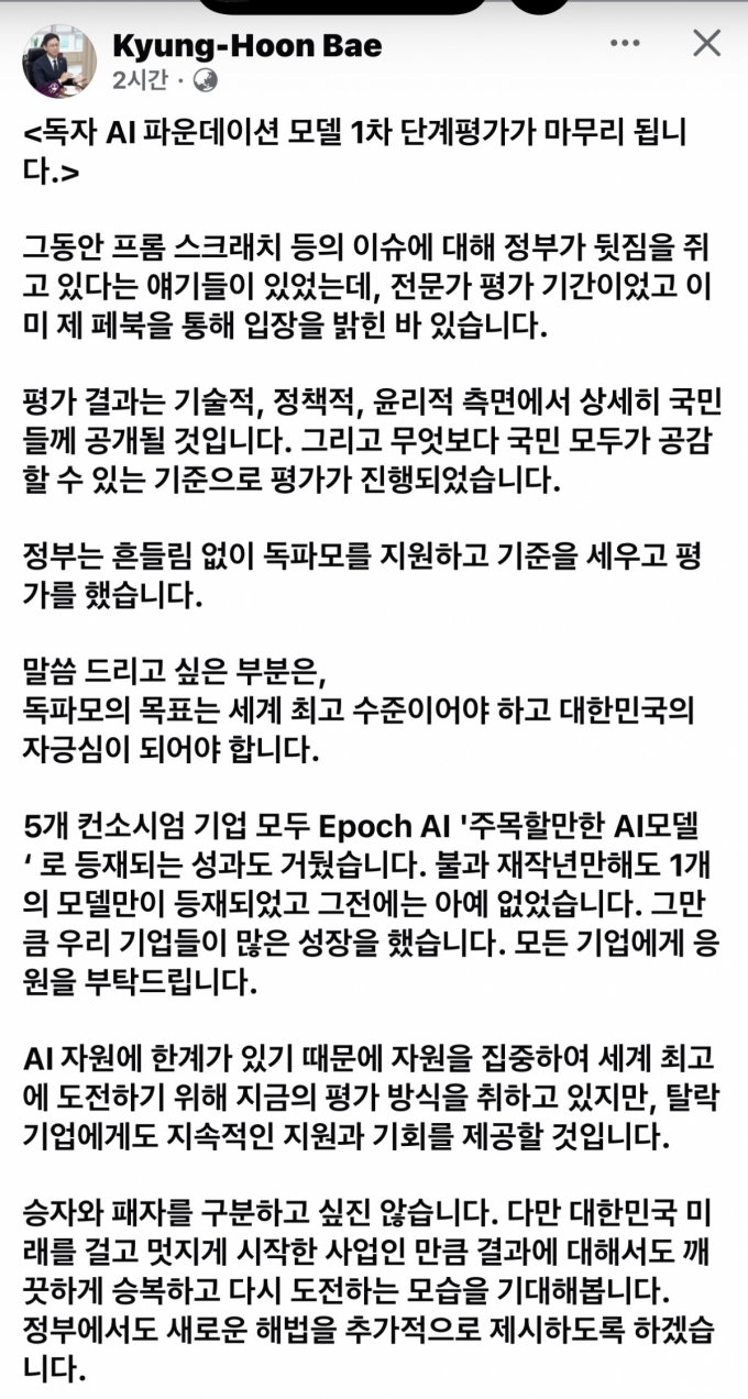 15ÀÏ ¹è ºÎÃѸ®´Â ÀÚ½ÅÀÇ ÆäÀ̽ººÏ °èÁ¤¿¡ 'µ¶ÀÚ AI ÆÄ¿îµ¥ÀÌ¼Ç ¸ðµ¨(ÀÌÇÏ µ¶ÆÄ¸ð) 1Â÷ ´Ü°èÆò°¡°¡ ¸¶¹«¸®µË´Ï´Ù'¶ó´Â Á¦¸ñÀÇ ±ÛÀ» ¿Ã·È´Ù.
