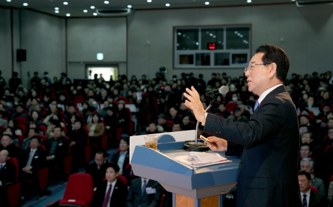 °øÃ»È¸¿¡´Â ±¤ÁÖ¡¤Àü³² ÇàÁ¤ÅëÇÕ¿¡ ´ëÇÑ °ü½ÉÀ» ¹Ý¿µÇϵí 500¿©¸íÀÇ µµ¹ÎÀÌ Âü¼®Çß´Ù. ±è¿µ·Ï Àü³²Áö»ç°¡ ±¤ÁÖ¡¤Àü³² ÇàÁ¤ÅëÇÕÀÇ ÃßÁø ¹è°æ°ú Çʿ伺, ÁÖ¿ä Æ¯·Ê »çÇ× µîÀ» µµ¹Î¿¡°Ô »ó¼¼È÷ ¼³¸íÇß´Ù. ÁúÀÇ¡¤ÀÀ´äÀ» ÅëÇØ µµ¹ÎÀÇ ´Ù¾çÇÑ ÀǰßÀ» Á÷Á¢ ûÃëÇÏ°í ¼ÒÅëÇÏ´Â ½Ã°£µµ °¡Á³´Ù.