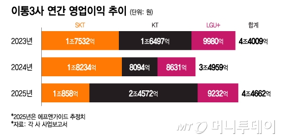 Áö³ÇØ ÀÕ´Ü ÇØÅ· »çÅ¿¡µµ À̵¿Åë½Å 3»ç ÇÕ»ê ¿µ¾÷ÀÌÀÍÀÌ 4Á¶¿øÀ» ³Ñ¾î¼³ Àü¸ÁÀÌ´Ù. SKÅÚ·¹ÄÞ ¿µ¾÷ÀÌÀÍÀÌ Å©°Ô ÁÙ¾îµç °¡¿îµ¥ KT¿Í LGÀ¯Ç÷¯½º°¡ °ßÁ¶ÇÑ ½ÇÀûÀ» ±â·ÏÇÑ ¿µÇâÀÌ´Ù.