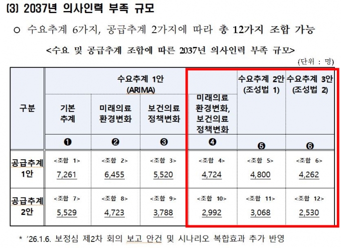 ÀÌ¿¡ µû¶ó ³íÀÇÇÒ 2037³â ÀÇ»ç Àη ºÎÁ· ±Ô¸ð´Â ¡â2530¸í(Á¶ÇÕ 12) ¡â2992¸í(Á¶ÇÕ 10) ¡â3068¸í(Á¶ÇÕ 11) ¡â4262¸í(Á¶ÇÕ 6) ¡â4724¸í(Á¶ÇÕ 4) ¡â4800¸í(Á¶ÇÕ 5)À¸·Î Á¼ÇôÁ³´Ù.