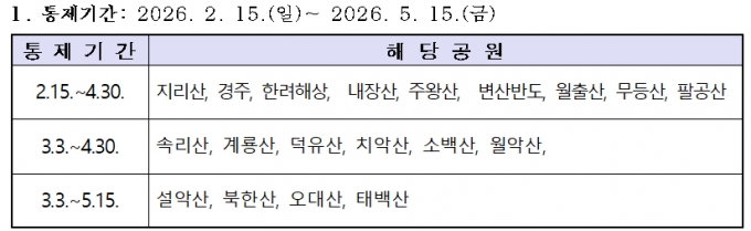 ¹«µî¡¤¿ùÃâ»êÀ» ºñ·ÔÇØ ±¹¸³°ø¿ø ³» »êºÒ À§ÇèÀÌ ³ôÀº ÀϺΠŽ¹æ·Î¿¡ ´ëÇØ¼´Â ´ÙÀ½´Þ 15ÀϺÎÅÍ ÃâÀÔÀÌ ÅëÁ¦µÈ´Ù. Àü±¹ ±¹¸³°ø¿øº° ÅëÁ¦±â°£°ú ÅëÁ¦±¸°£Àº ±¹¸³°ø¿ø°ø´Ü ´©¸®Áý¿¡¼ È®ÀÎÇÒ ¼ö ÀÖ´Ù.