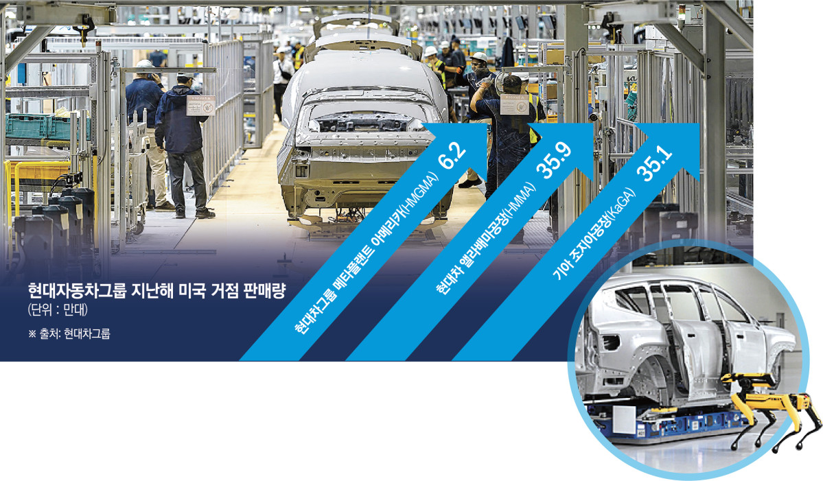 22ÀÏ Çö´ëÂ÷±×·ì¿¡ µû¸£¸é Áö³ÇØ ¹Ì±¹ ÇöÁö »ý»ê °ÅÁ¡ 3°÷¿¡¼ Á÷Á¢ »ý»êÇØ ÆÇ¸ÅÇÑ Â÷·®Àº Àü³â ´ëºñ 8.4% Áõ°¡ÇÑ 77¸¸3116´ë·Î Áý°èµÆ´Ù. Çö´ëÂ÷ ¾Ù¶ó¹è¸¶ °øÀå(HMMA)¿¡¼ 35¸¸9616´ë, Çö´ëÂ÷±×·ì ¸ÞŸÇ÷£Æ® ¾Æ¸Þ¸®Ä«(HMGMA)¿¡¼ 6¸¸2000´ë, ±â¾Æ Á¶Áö¾Æ °øÀå(KaGA)¿¡¼ 35¸¸1500´ë°¡ °¢°¢ »ý»ê¡¤ÆÇ¸ÅµÆ´Ù. Áö³ÇØ ¹Ì±¹ ½ÃÀå¿¡¼ ÆÇ¸ÅµÈ Â÷·®(183¸¸6172´ë) °¡¿îµ¥ ¾à 42%°¡·®À» ÇöÁö °øÀå¿¡¼ »ý»êÇÑ ¼ÀÀÌ´Ù.
