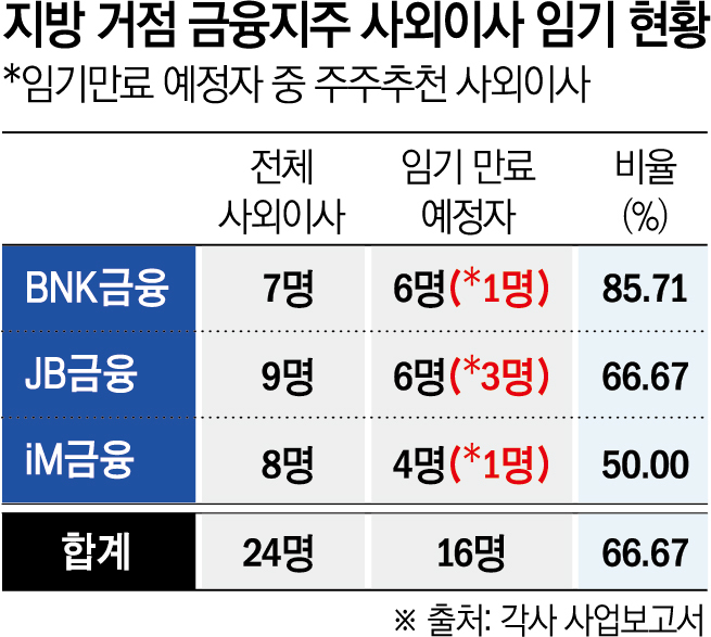 BNK¡¤JB¡¤iM±ÝÀ¶ »ç¿ÜÀÌ»ç 24¸í Áß 16¸í 3¿ù ÀÓ±â Á¾·á ÀÌ»çȸ ¡®ÂüÈ£±¸Ã࡯ ÁöÀû¿¡ ÁÖÁÖÃßõÀÌ»ç È®´ë ¿©ºÎ °ü½É °æ¿µÁø °¨½Ã ±â´É °È¡¤Áö¹è±¸Á¶ Åõ¸í¼º È®º¸ ½ÃÇè´ë
