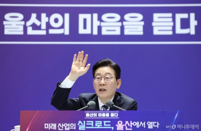 ÀÌ ´ëÅë·ÉÀº 23ÀÏ ¿ï»ê Ÿ¿îȦ¹ÌÆÃ ÇöÀå¿¡¼ ±èµÎ°â ¿ï»ê½ÃÀåÀ» ÇâÇØ "¸Å¿ì ³íÀïÀû »ç¾È"À̶ó¸ç À̰°ÀÌ ¹àÇû´Ù.