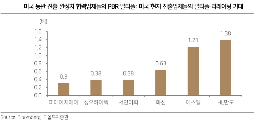 ½ÃÀå¿¡¼´Â ÀÌµé ºÎǰ»ç°¡ ·Îº¿À̶ó´Â ½Å±Ô »ç¾÷ ÁøÃâ¿¡µµ ºÒ±¸ÇÏ°í ¿©ÀüÈ÷ ÀúÆò°¡ »óŶó´Â Á¡¿¡ ÁÖ¸ñÇÑ´Ù. ȽÅ, ¼º¿ìÇÏÀÌÅØ, ¼¿¬ÀÌÈ µî ÁÖ¿ä ºÎǰ»çµéÀÇ ÁÖ°¡¼øÀÚ»êºñÀ²(PBR)Àº ¿©ÀüÈ÷ 1¹è¸¦ Å©°Ô ¹Øµ¹°í ÀÖ´Ù.
